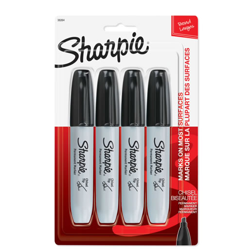 Sharpie Permanent Markers, Chisel Tip, Black, 4 Count